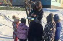 Зурлар төркемендә, бездә кышлаучы кошлар темасына әңгәмә үтте. Балалар кошларның җимлекләренә ашарга салдылар. Безнең тирәлектә кайсы кошлар кышлавын өйрәнделәр. Җимлеккә чыпчык белән песнәкнең иң еш килүен ачыкладылар. Көн саен кошларның җимлекләренә ашарга салу турында килештеләр.