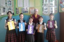 Бүген 5 нче сыйныф укучылары белән берлектә хезмәт дәресен укырга дип мәктәбебезгә Насретдинова Л. килде. Алар кәгазьдән киселгән кар бөртекләре белән кар бабай ясадылар. Лилия - безнең мәктәбебезнең даими кунагы. Укучыларыбыз да аның дәресләргә килүен көтеп алалар.
