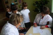Бүген мәктәптә Кайбыч районы үзәк сырхауханәсенең участок педиатры Писарева Г.П. тарафыннан укучыларның сәламәтлек торышы тикшерелде. Галина Петровна укучыларның буен, авырлыгын үлчәде, үпкә һәм йөрәк эшчәнлеген тикшерде, физик һәм нерв-психик үсешен ачыклады, сәламәтлек буенча балаларның кайсы төркемгә керүләрен билгеләде. Шулай ук, укучыларның күз күреме ни дәрәҗәдә икәнлеге дә ачыкланды.