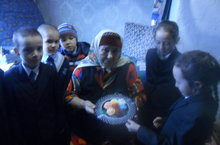 "Язгы мәрхәмәтлелек атналыгы"акциясенең 7 нче көнендә укучылар сугыш чоры балалары Сайранова Мөнирә һәм Гарифуллин Харис янында булып балачаклары турында сораштылар, үзләре ясаган бүләкләрне тапшырдылар.