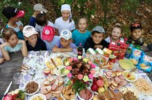 Бакчалардан барлык уңышлар җыелып бетте.Инде бәйрәм итсәк тә була. Әйе,бүген бездә Уңыш бәйрәме. Көн кояшлы,җылы. Агачлар ,әйтерсең , көзге матур,сары,кызыл,чуар күлмәкләрен кигәннәр. Бәйрәмебез шушы табигать кочагында узды.Бәйрәмдә ике команда ярышты.Ярышта күмердә бәрәңге пешерү,өстәл сервировкалау,көзге мода,җыр-биюләр һ.б.булды.Нәтиҗәдә дуслык җиңде.Балалар шат,канәгать булып калдылар. -