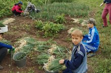 Инде өченче көн укучылар суган уңышы җыялар.Суган кышка гына түгел,көзге ярминкәдә сатарга да җитә.