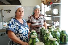 Мәктәп яны укыту-тәҗрибә участогында үстерелгән продукция мәктәп ашханәсендә туклану өчен тотыла. Бу инде укучылар ел дәвамында ашламасыз үстерелгән, чиста, витаминлы ризык белән тукланачак дигән сүз. Буген пешекче апалар кышкы табынга куяр өчен кыярлар тозладылар. -
