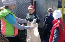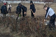 "ЭКОяз" айлыгы дәвам итә. Югары сыйныф укучылары укытучылар белән берлектә мәктәп территориясенең алгы өлешен җыештырдылар.