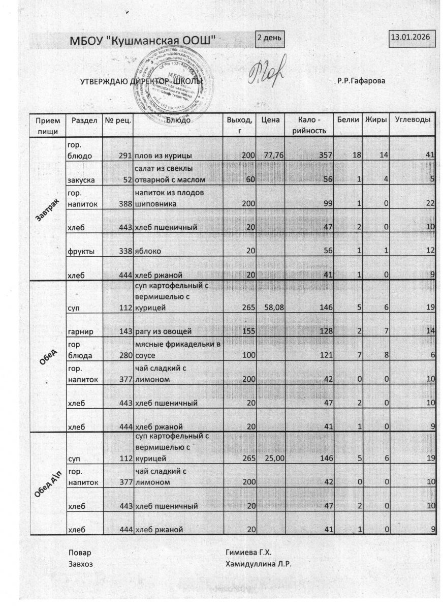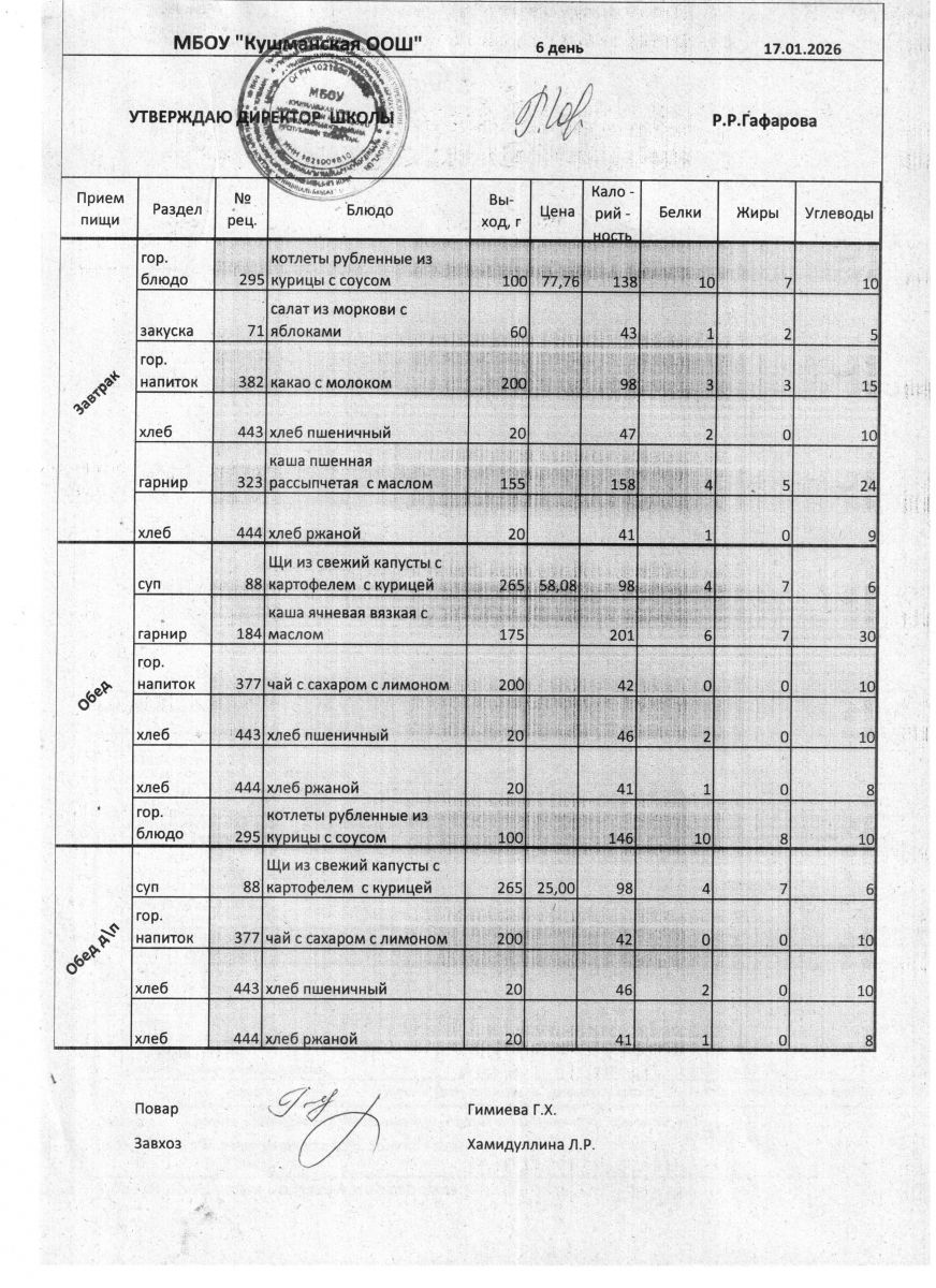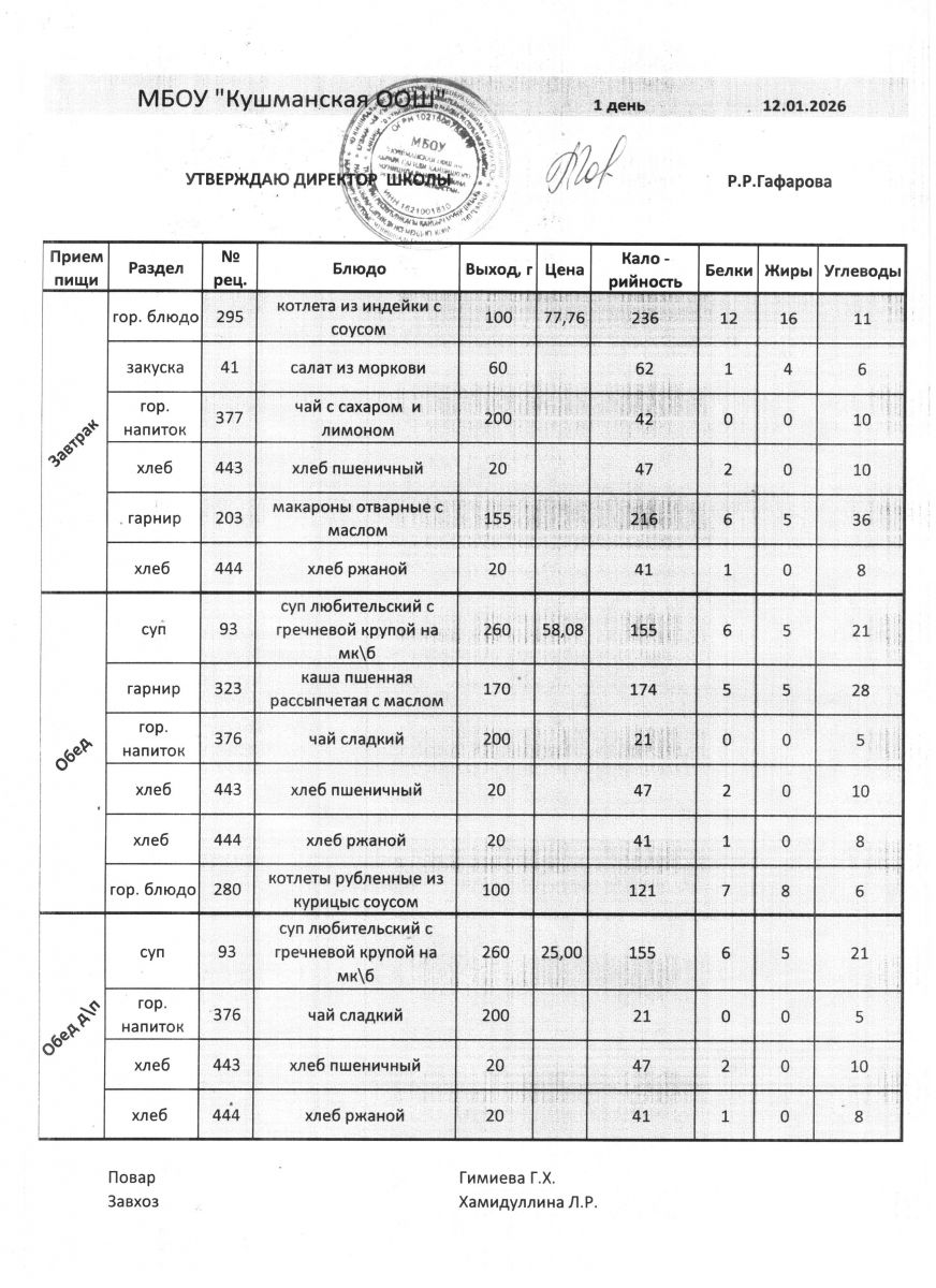 Меню Январь 2026 года