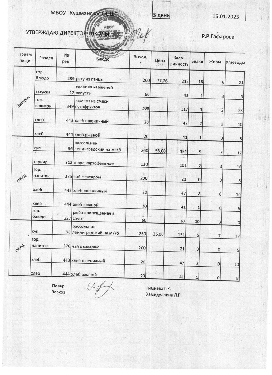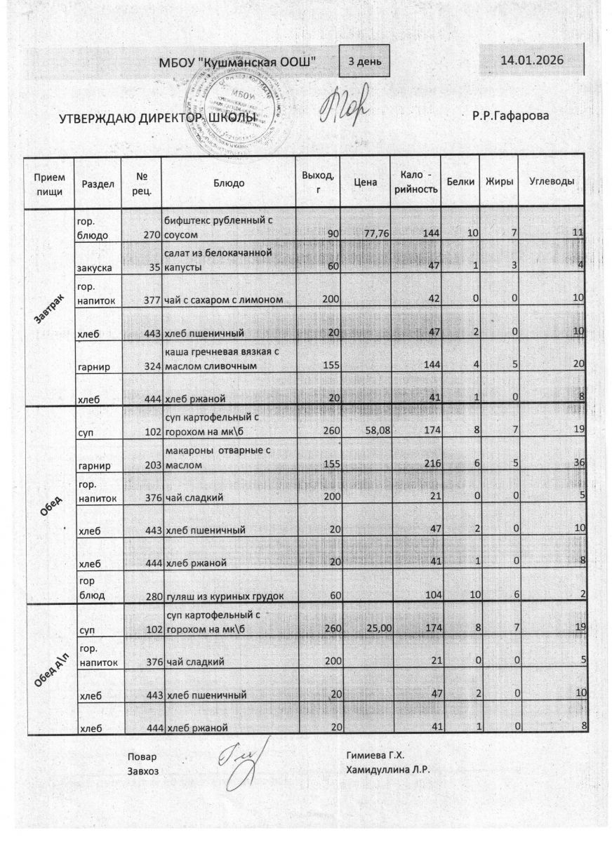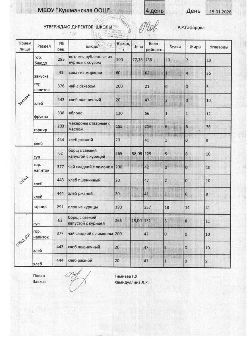 Меню Январь 2026 года