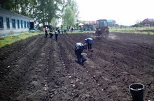 Посадка картофеля 27.05.2017 Сажать картофель нужно только при условии прогрева почвы до 8°C. В основном земля готова для посадки во время цветения черемухи. Многие годы мы экспериментировали над сортами картофеля. Самый лучший урожай у нас дают два сорта: "Лорх" и "Розанна". Они нас не подводят уже который год. Надеемся на хороший урожай и в этом году.