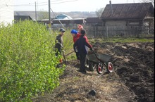 4 Мая - субботник. Старшеклассники разошлись по селу, чтобы проверить и убрать места, где еще не убрана территория, а учащиеся 4 класса остались работать на территории школы