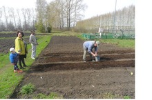 В огороде почти полный порядок. Вскопаны грядки, посеяны морковь, свекла, посадили лук и т.д. Под чутким руководством директора школы Аркадий Яковлевич заботливо ухаживает за грядками рассады – мульчирует почву, поливает.