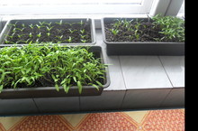 В школе готовятся к весне. На подоконниках рассадили перцы и помидоры. Все взошло. и радует нас зеленью.