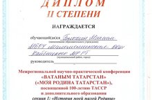 Сегодня ученик 8 класса Блохин М. участвовал в Межрегиональной практической конференции "Ватаным Татарстан", посвященный 100-летию ТАССР и дополнительного образования. Занял 2 место. Успехов, тебе, Максим!