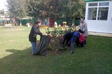 С наступлением осени наступает и пора дождей, осеннего листопада и прохладного ветра. Погода еще всех радует ,своим осенним ,теплым солнышком и сегодня сотрудники детского сада убирали опавшую листву на участке детского сада.