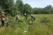 Коллектив детского сада скашивал обочины дорог, в сторону деревни П.Буа.