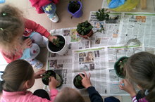 Воспитатель старшей группы начала работать над проектом "Без бүлмә гөлләре яратабыз".Первым этапом проекта было принести из дома ростки комнатных цветов и поставить в воду,чтобы они дали корень. Сегодня ровно неделя прошла с момента посадки в воду.Второй этап проекта - посадка цветов в горшочки которые принесли из дома.