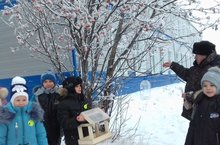 Ученики 2 класса с родителями смастерили кормушки и повесили их на деревья, которые растут в школьном саду. Дети совместно с родителями туда положили хлебные крошки, кусочки сальца, зернышки. Это была столовая для птиц.