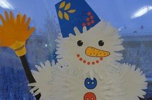 Скоро Новый год! Украсим оконное стекло снеговиком из бумажных "ладошек". Он будет радовать Вас и прохожих.1. Обведём на белой бумаге ладонь.2. Вырежем бумажную деталь.3. Наклеим "ладошки" по кругу. "Пальчики" должны оттопыриваться, чтобы снеговик был пушистым.4. Приклеим "глаза", "нос", "рот".5. Какой снеговик без метлы? Её мы сделаем из "ладошек". -