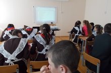 Сегодня учащиеся 8-9 классов встретились с представителями Апастовского аграрного колледжа Фахрутдиновой Г.Ш. (зам.директора по УВР), Упоровой К. и Мухутдиновым Б.( студенты). Они рассказали о своём колледже, о специальностях, которым можно обучиться после 9 класса.