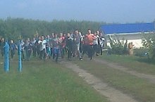 Сегодня, после уроков, мы всей школой вышли на уборку картофеля.