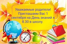 Приглашаем Вас 1 сентября в школу на День знаний к 8.30. Всем родителям быть в масках.