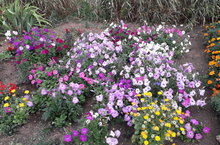 Не смотря на жару, цветники радуют изобилием красок.
