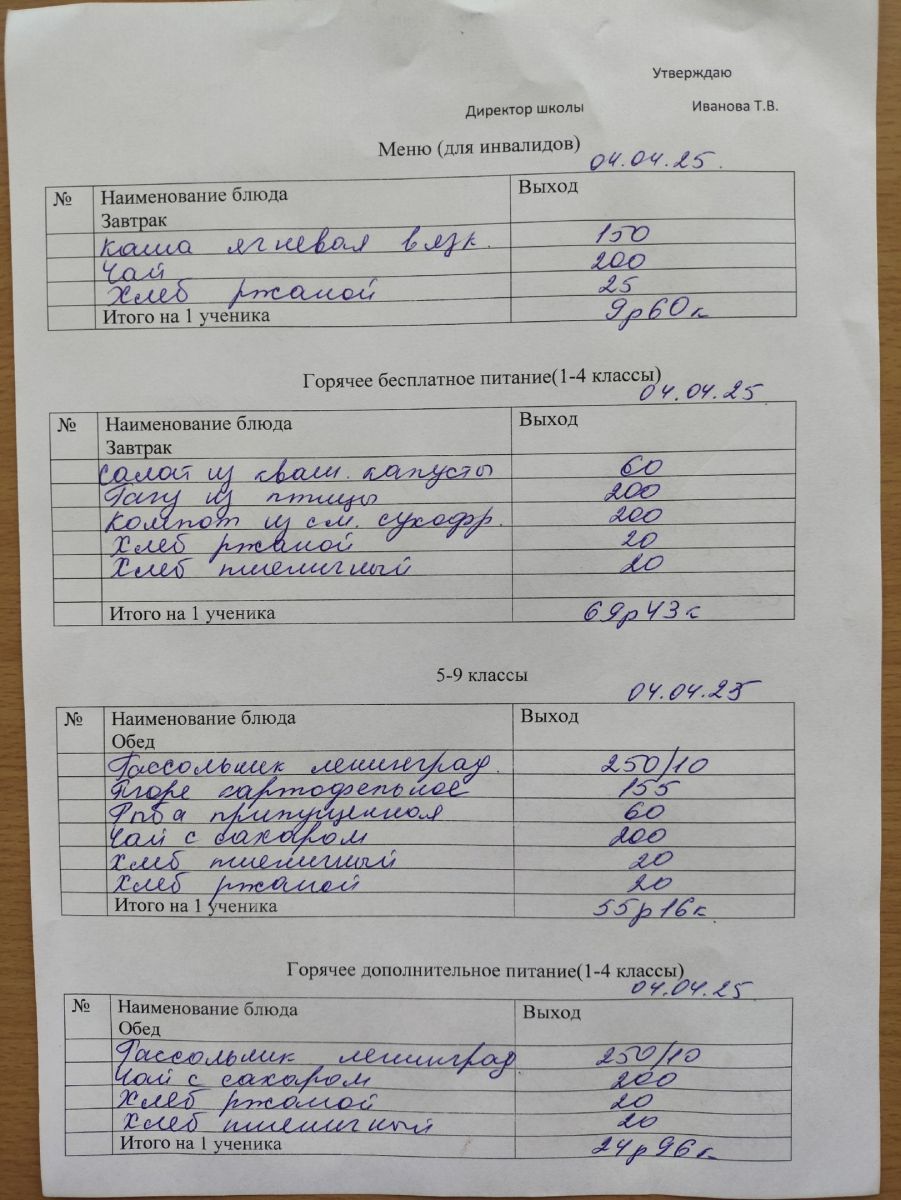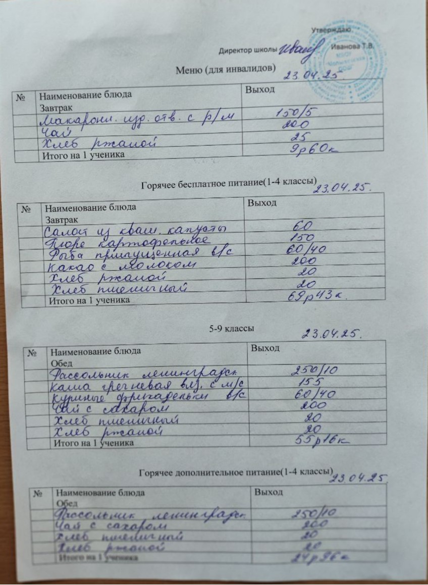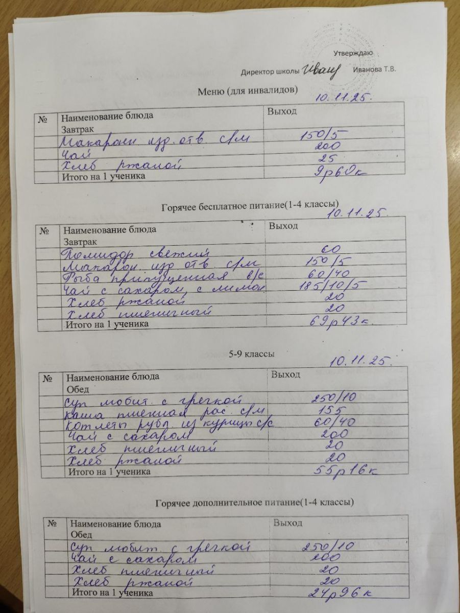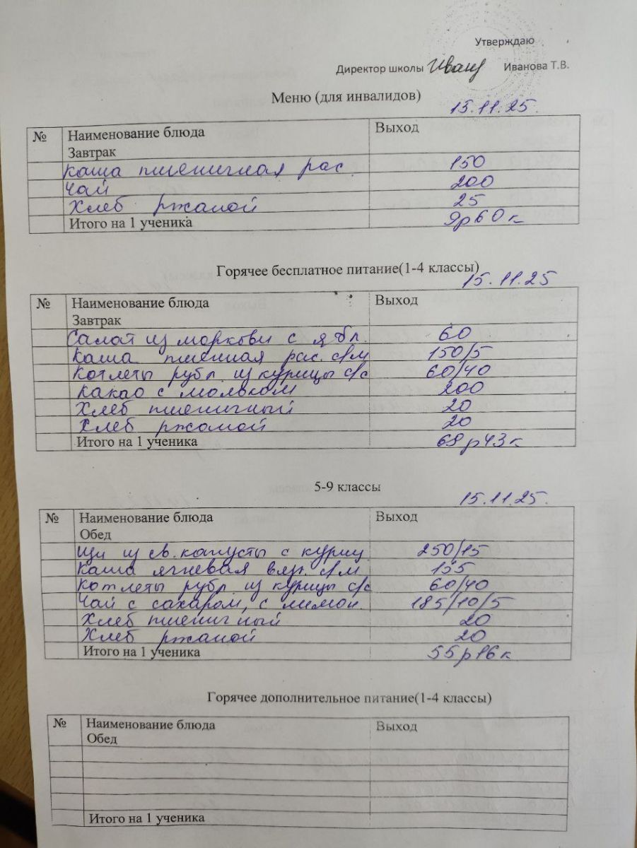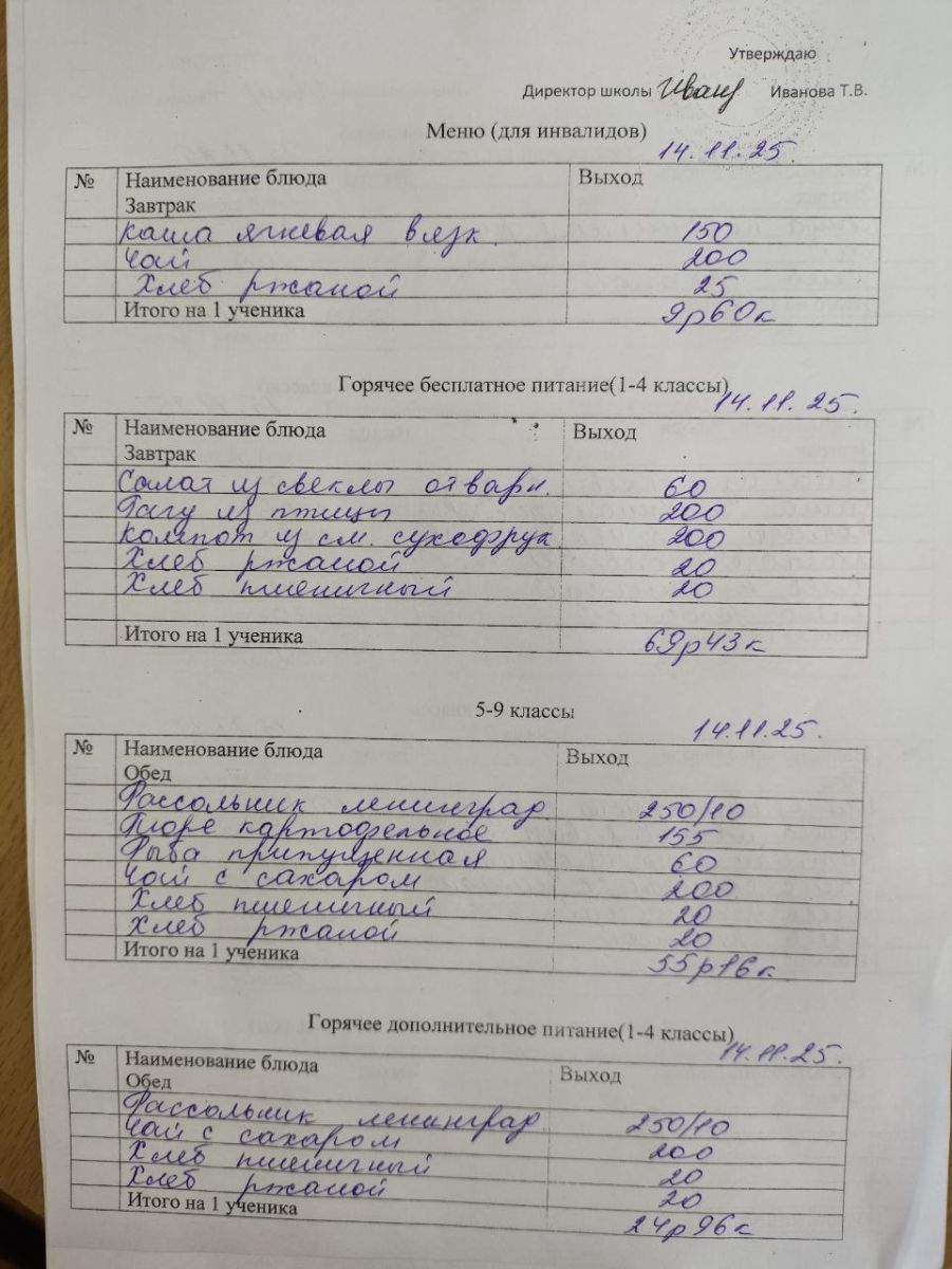 - Меню в столовых общеобразовательных школ РТ с 20 по 25 ноября , 04 по 09 декабря , 18 по 23 декабря 2023г.