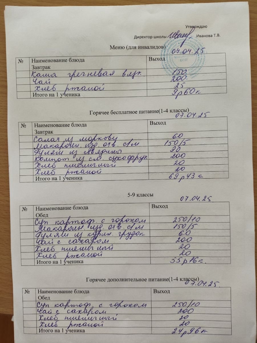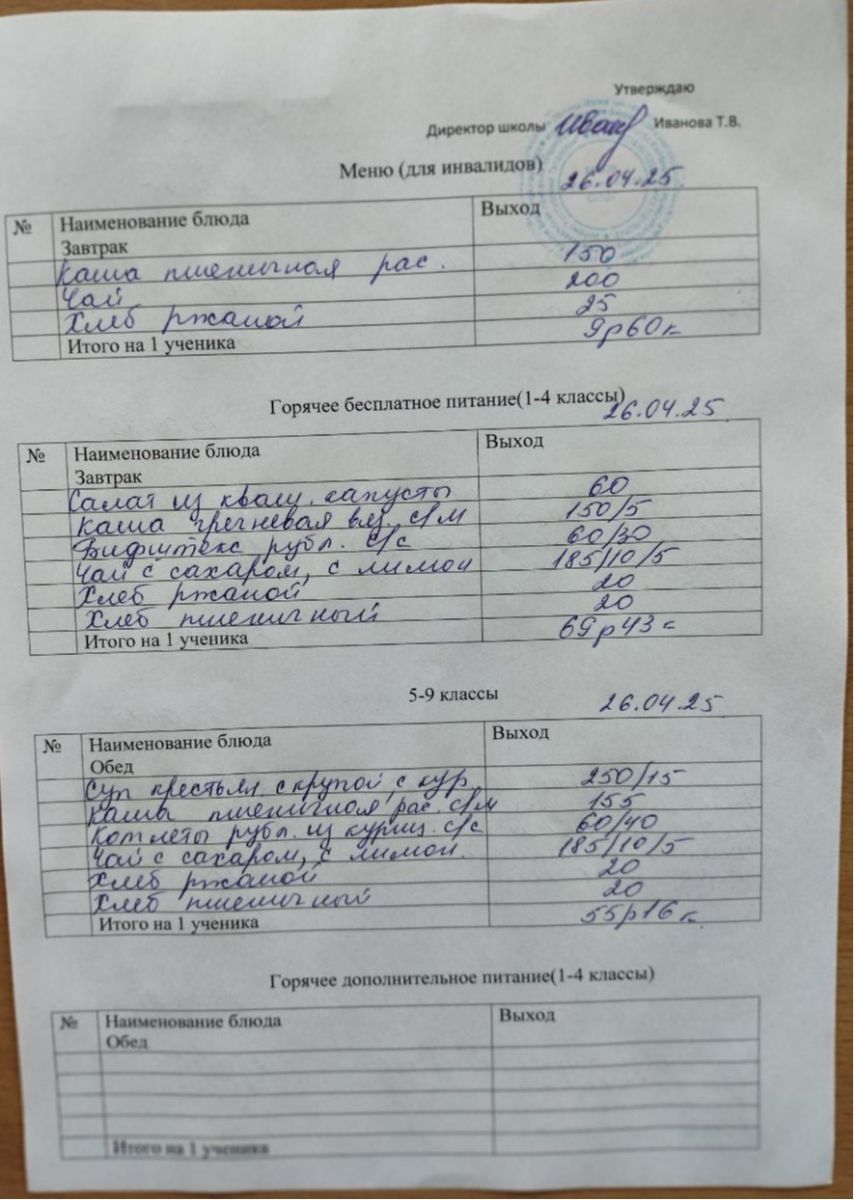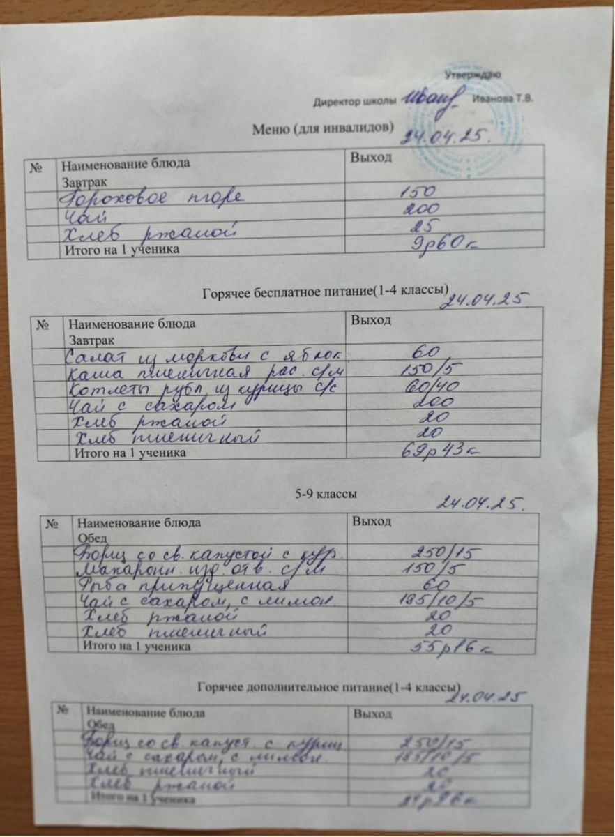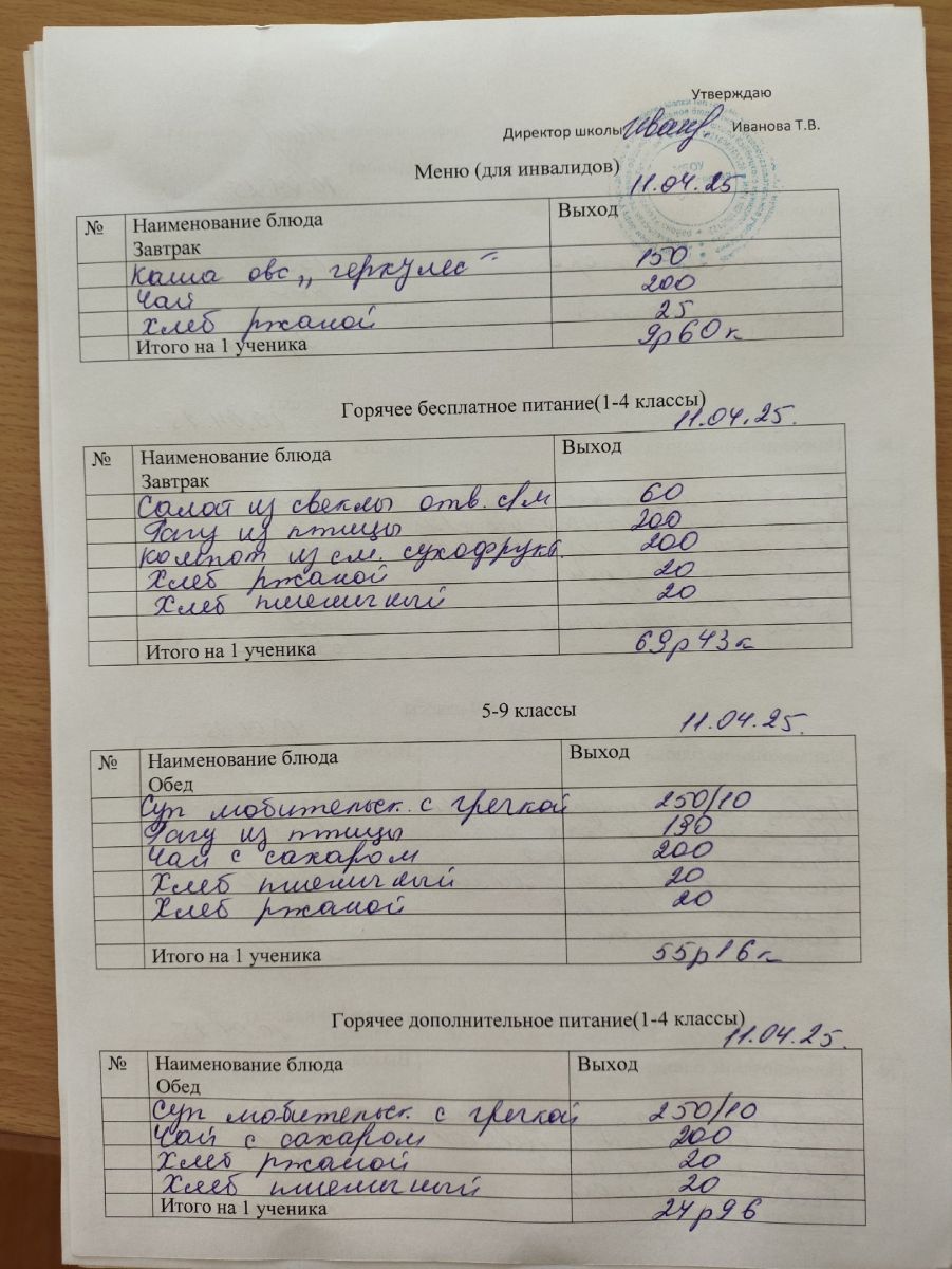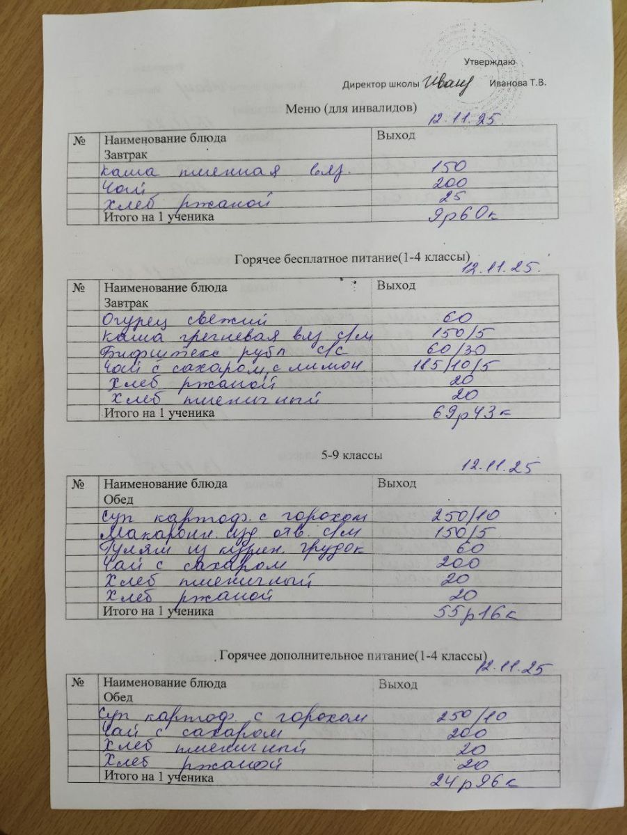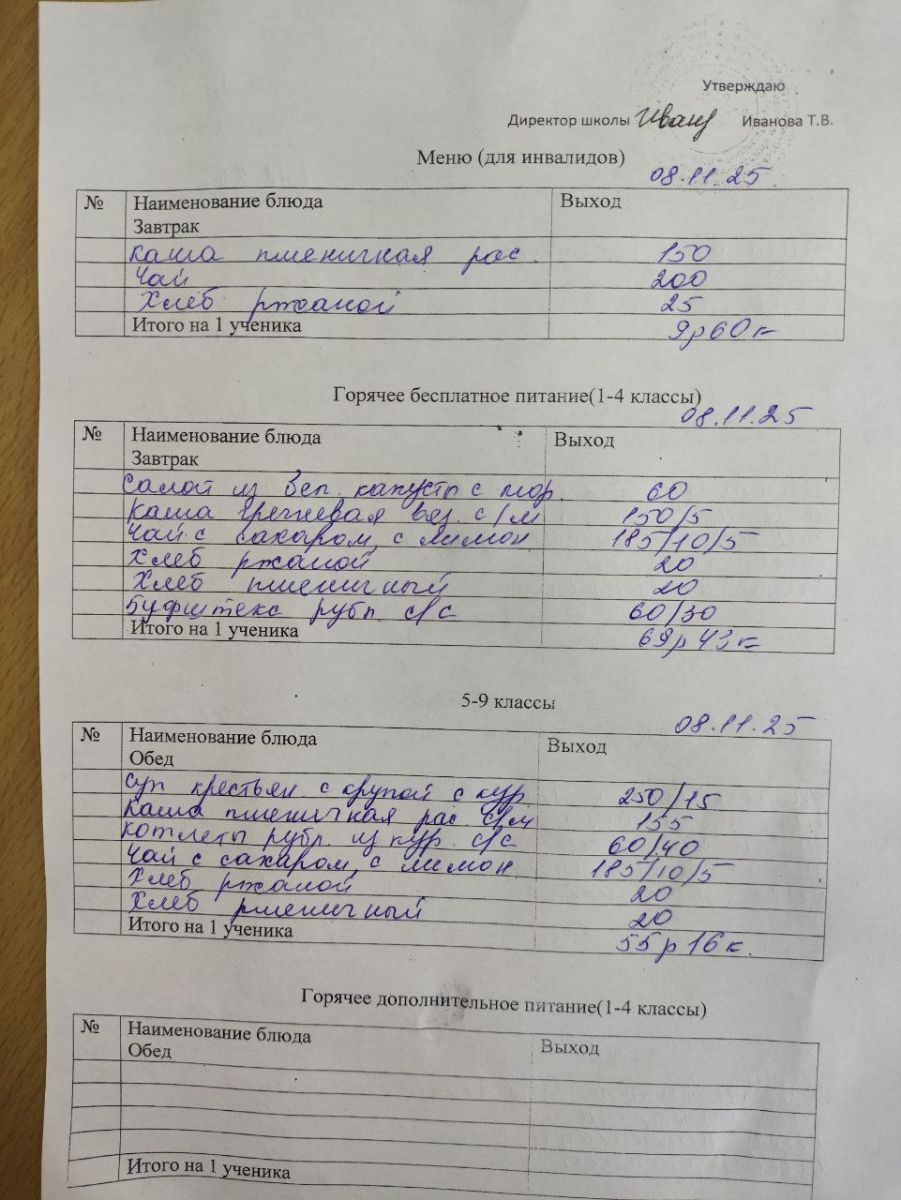 - Меню в столовых общеобразовательных школ РТ с 20 по 25 ноября , 04 по 09 декабря , 18 по 23 декабря 2023г.