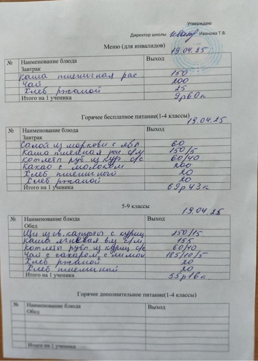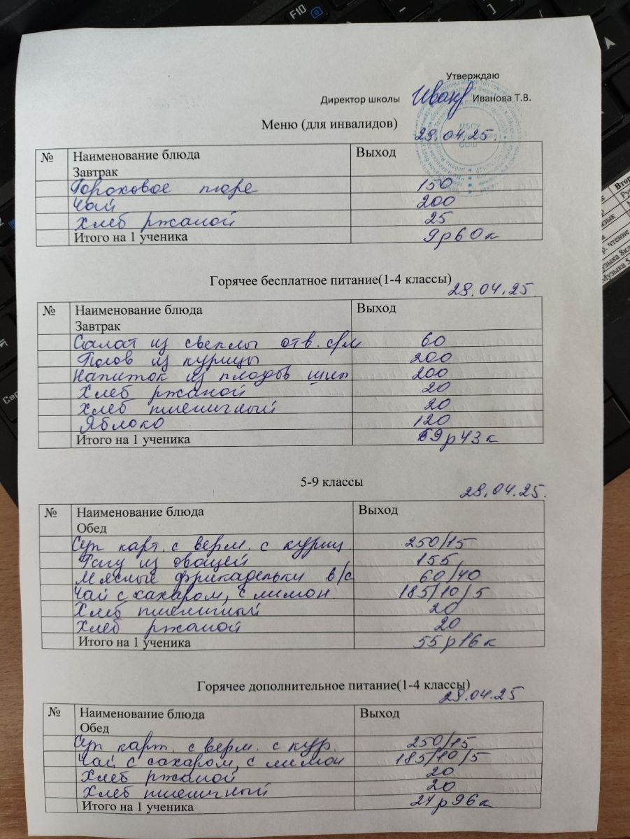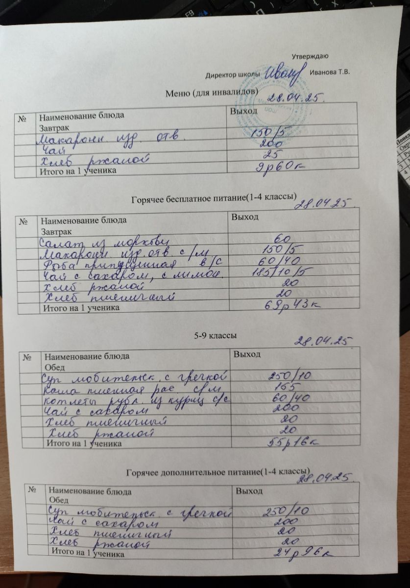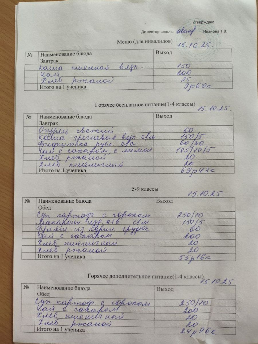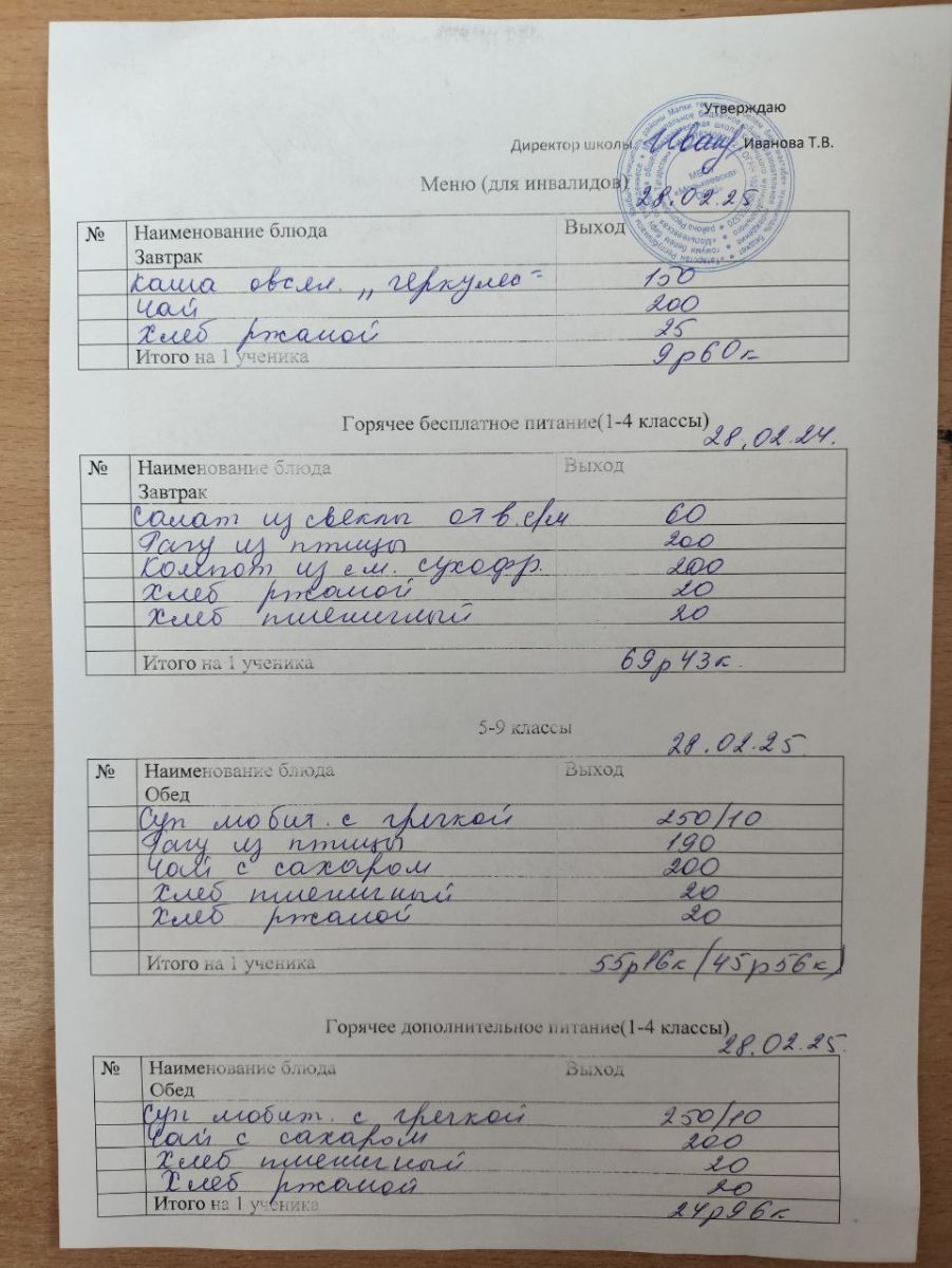 - Меню в столовых общеобразовательных школ РТ с 20 по 25 ноября , 04 по 09 декабря , 18 по 23 декабря 2023г.