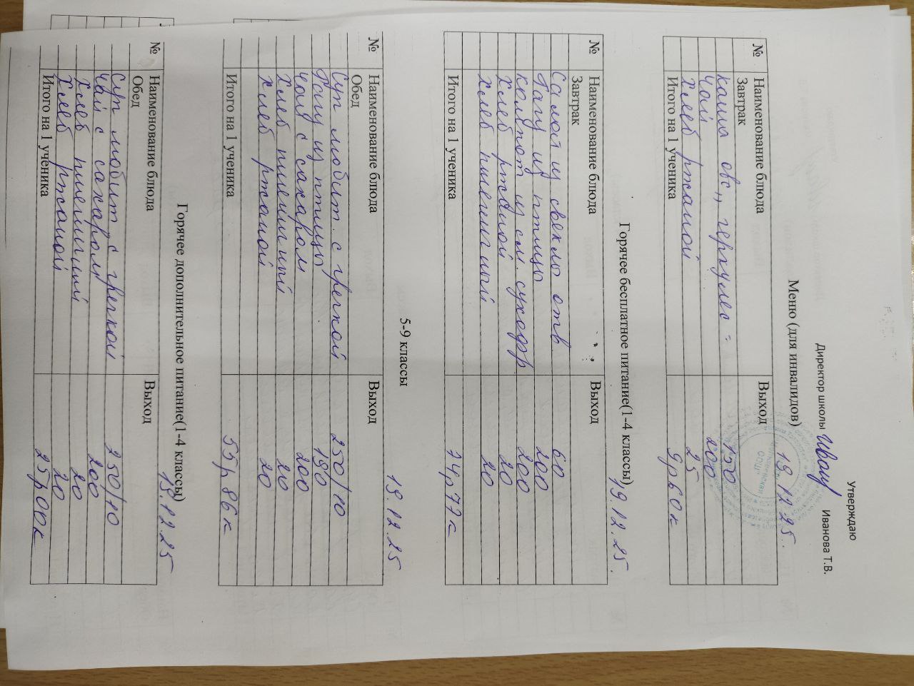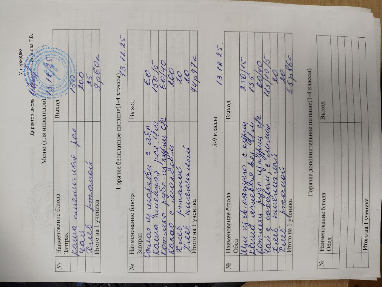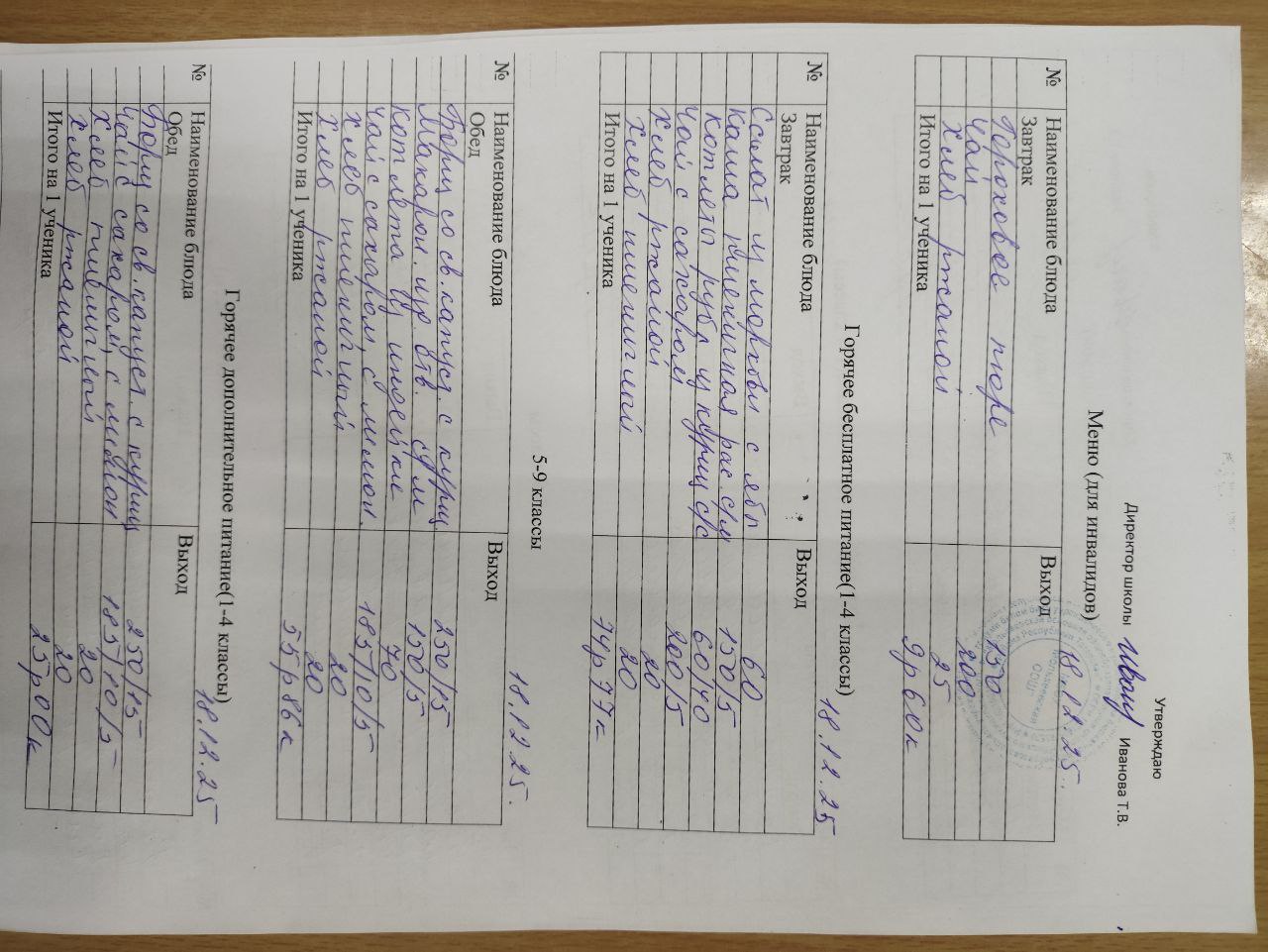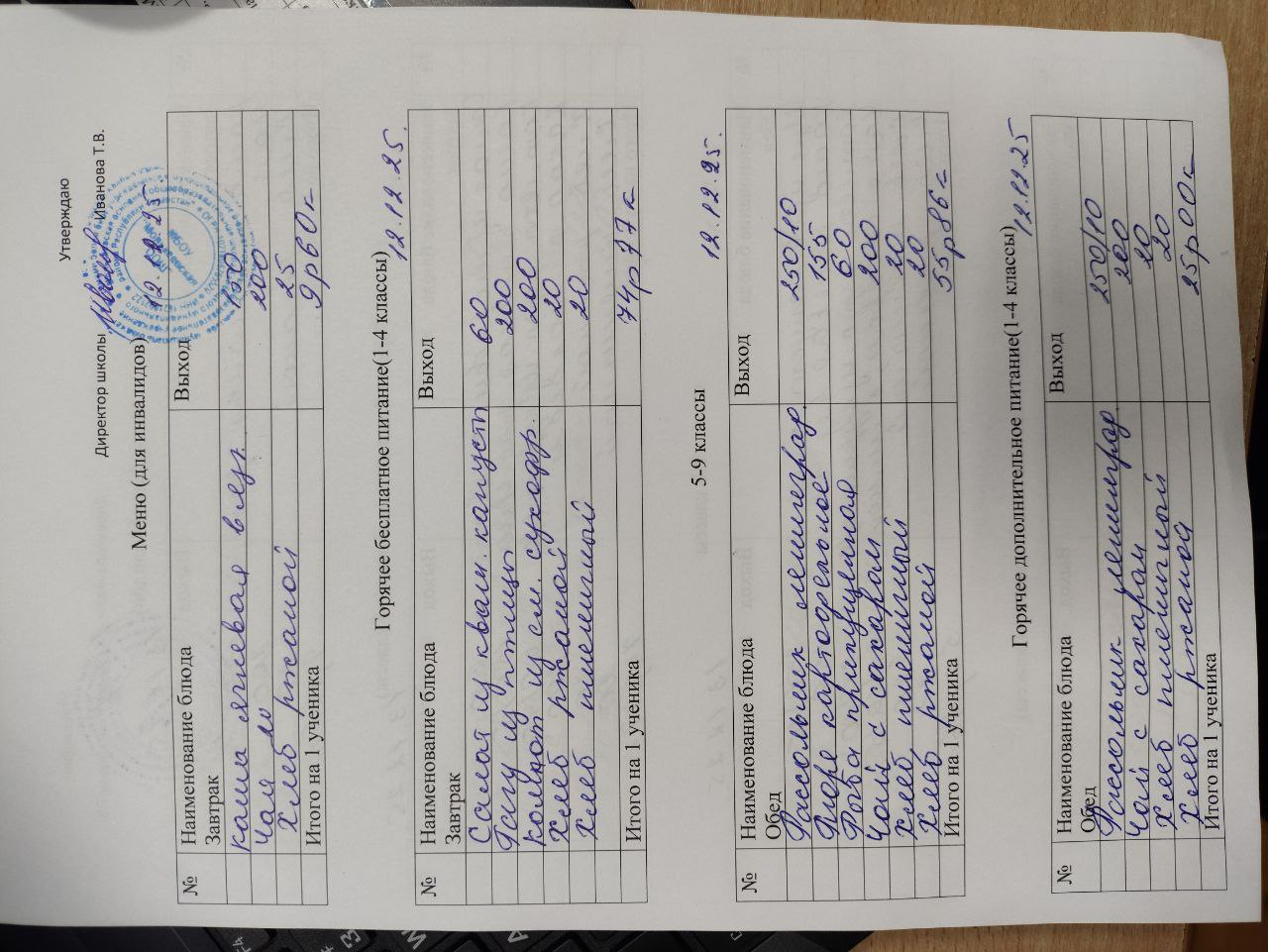 12-дневное типовое меню 1-4 классы