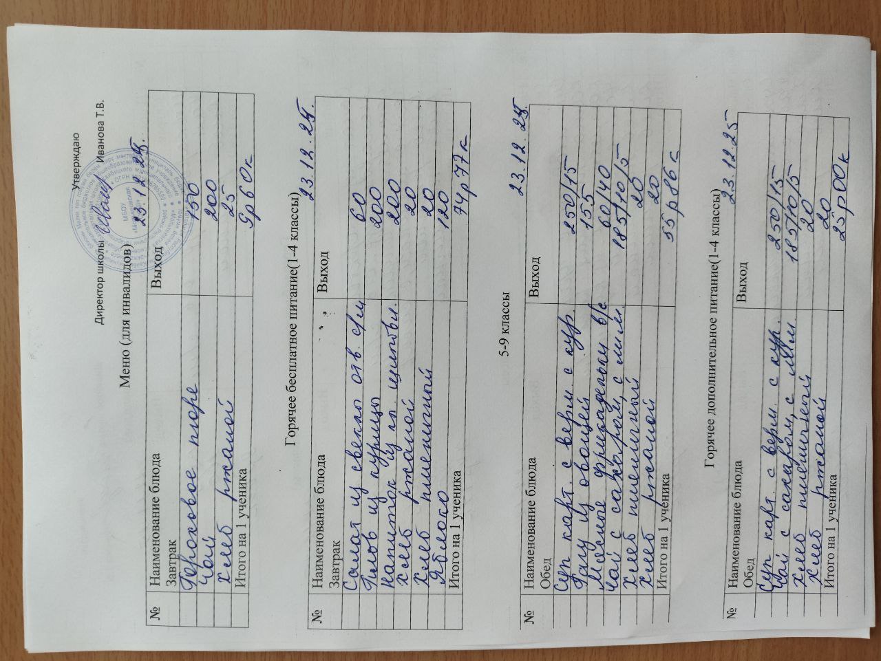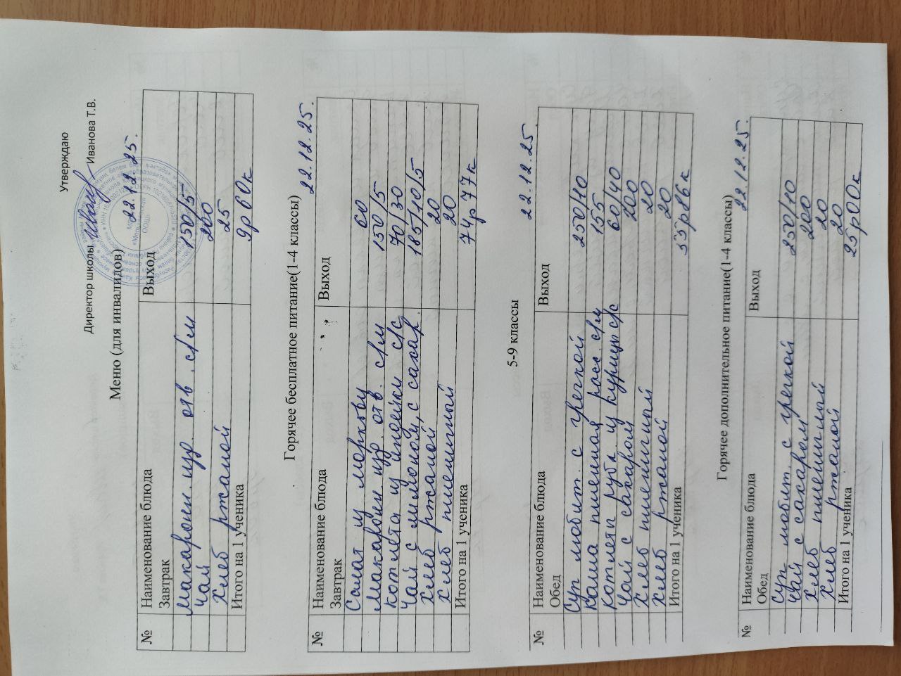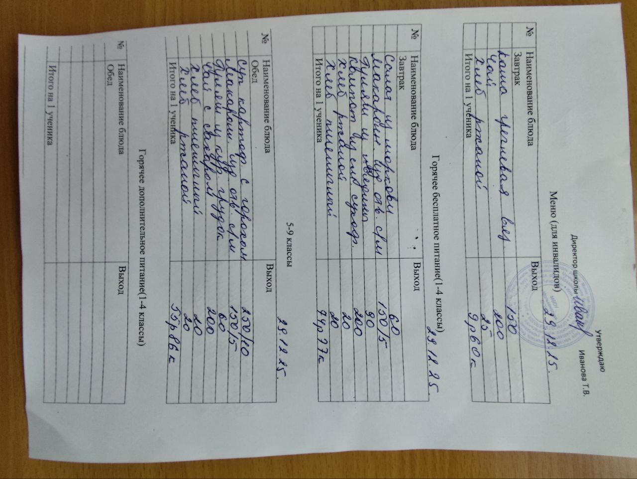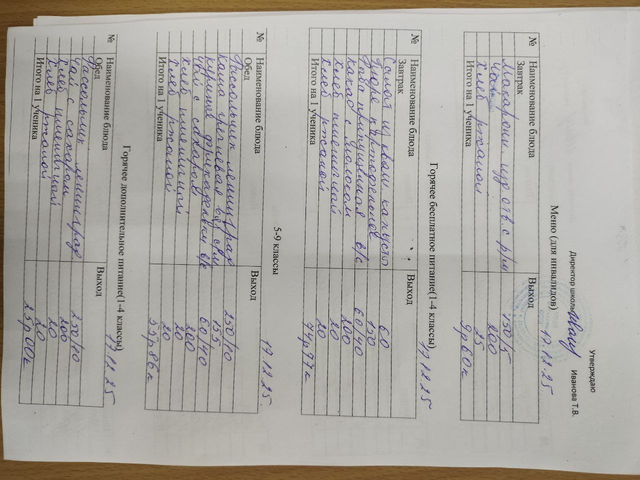 12-дневное типовое меню 1-4 классы