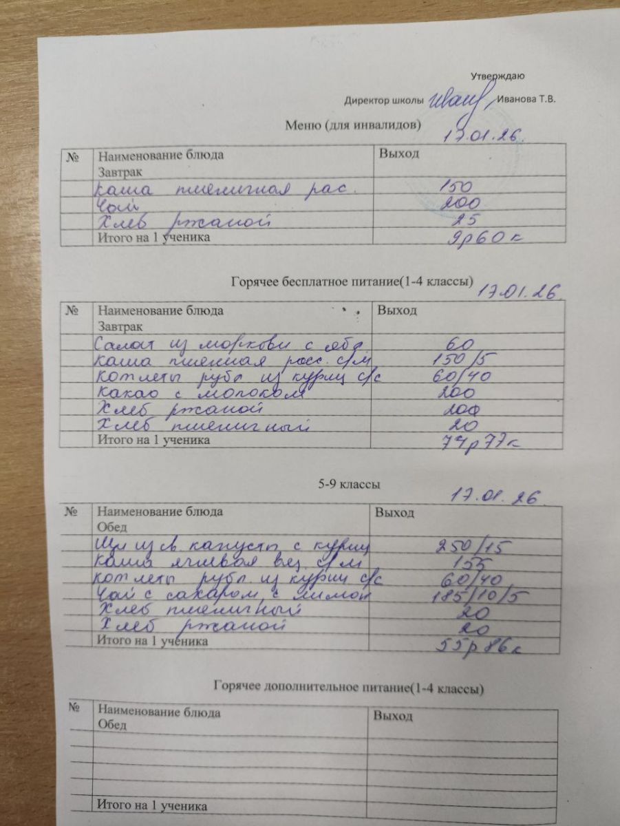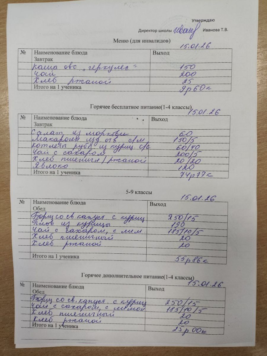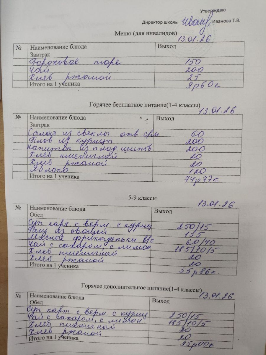 Меню январь 2026г.
