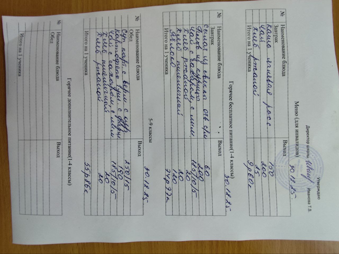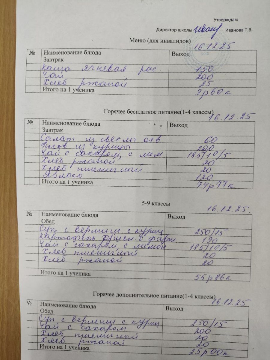 Меню декабрь 2025г.