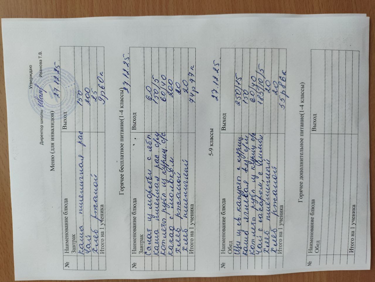 Меню ноябрь 2025г.