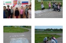 "Дуслык" мәктәп яны лагеренда 12 июнь-Россия көне уңаеннан күп кенә чаралар уздырылды. Укучыларга дәүләт символлары аңлатылды, Россия гимнын җырладылар.Ә иң күңеллесе, мөгаен, асфальтка рәсем ясау конкурсы булгандыр. Балалар рәхәтләнеп, бөтен фантазияләрен эшкә җигеп ярыштылар.