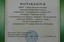 Бөек Җиңүнең 70 еллыгына багышлап район күләмендә үткәрелгән "Җиңү елъязмасы төссезләнмәс" баннерлар конкурсында мәктәп коллективы 3- урынга лаек булды. Котлыйбыз!
