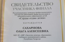 Сахарнова Ольга Алексеевна приняла участие в республиканском конкурсе профессионального мастерства работников сферы воспитания и дополнительного образования детей "Сердце отдаю детям".
