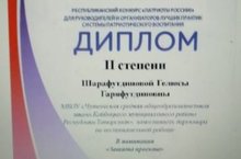 Диплом II степени получила за свою работу: "Патриоты России", координатор отряда имени кавалера Красной Звезды М.В. Драндрова МБОУ "Чутеевской СОШ" - Шарафутдинова Г. Г. . Поздравляем, желаем дальнейших успехов!