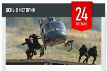 24 октября - День подразделений специального назначения, этот профессиональный праздник учрежден указом Президента РФ 31 мая 2006 года. 24 октября 1950 года, по указу военного министра СССР, маршала Советского Союза А. М. Василевского, в вооруженных силах СССР приступили к формированию 46 рот специального назначения, штатной численностью по 120 человек. Был создан армейский спецназ.
