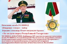 Начальник штаба РО ВВПОД «Юнармия» генерал – майор Бородин А.И. получил высокую награду Республики: «За заслуги перед Республикой Татарстан».