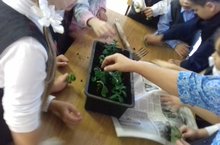 Учащиеся объединения "Друзья природы" учатся сажать комнатные цветы.Для украшения подоконников.