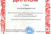 МБОУ «Старотябердинская СОШ имени М.К.Кузьмина» участвовала в Республиканской историко-патриотической акции «Мы в летописи Великой Отечественной Войне» и стала победителем в номинации «Лучший школьный музей Республики Татарстан»