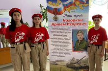 Стенд посвященный Герою погибшему в зоне СВО - кавалеру ордена Мужества, командиру танка - Нагоркину Артему. Отряд имени Героя Советского Союза А. Е. Кошкина "Большеподберезинская СОШ".