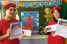 МО ВВПОД "Юнармия" поздравляет всех с Днем Защитника Отечества. Юнармейцы отряда им Героя Советского Союза Михаила Кузьмича Кузьмина приняли участие в акции и написали "Письмо солдату". Их получат выпускники школы Васильев Константин и Сидоров Максим, которые в настоящее время проходят срочную службу в Архангельской области. Поздравления и пожелания всегда одинаковые, мирного неба всем и каждый юнармеец стремиться стать настоящим патриотом своей Родины.