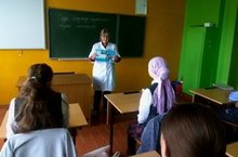Бүген, фельдшер Сафина Люзия Һади кызы, укучылар белән "Суда йөзгәндә куркынычсызлык кагыйдәләре" дигән темага әңгәмә үткәрде. Каникуллар вакытында суда йөзгәндә сак булырга кирәклеген сөйләде, суда батучыны күргәндә беренче ярдәм күрсәтү буенча киңәшләрен бирде.