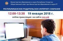 19 января 2018 года с 12.00 по 13.00 состоится Республиканское родительское интернет- собрание на тему "Вертуальная жизнь ребёнка: интернет друг или враг". Онлайн - трансляция на сайте КИУ.РФ. Вопросы можно задать по адресу: roditelirt@mail.ru