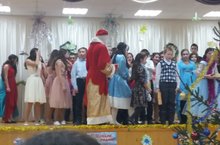 Новогодняя елка началась с того, что представления открыли среднее и старшее звено. С какими только сказочными героями дети не встретились... Ребята с огромной радостью приветствовали самых долгожданных гостей на празднике – Деда Мороза и Снегурочку, участвовали в конкурсах, пели, водили хоровод вокруг ёлки, веселились. Все участники новогодних мероприятий получили сладкие подарки от Деда Мороза.