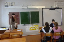 В конце урока учащиеся сидели на онлайн-тренажере.
