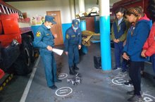 Ученики 10 класса сегодня побывали на экскурсии в пожарной части Оп "Старое Тябердино". Начальник части Тимофеев С.Г. провел для ребят интересный блок информации с практическим показом. Учащиеся познакомились с работой пожарной части от момента получения сообщения о пожаре до возвращения в часть после полного потушения. Ребята ознакомились с временными нормативами экипировки, развертывания машины на месте и с расходом времени на дорогу. Были крайне удивлены скоростью машины в пути, не более 40 км/ч. Но, как оказалось, это скорость вполне оправдана, так как в машине 4т воды.