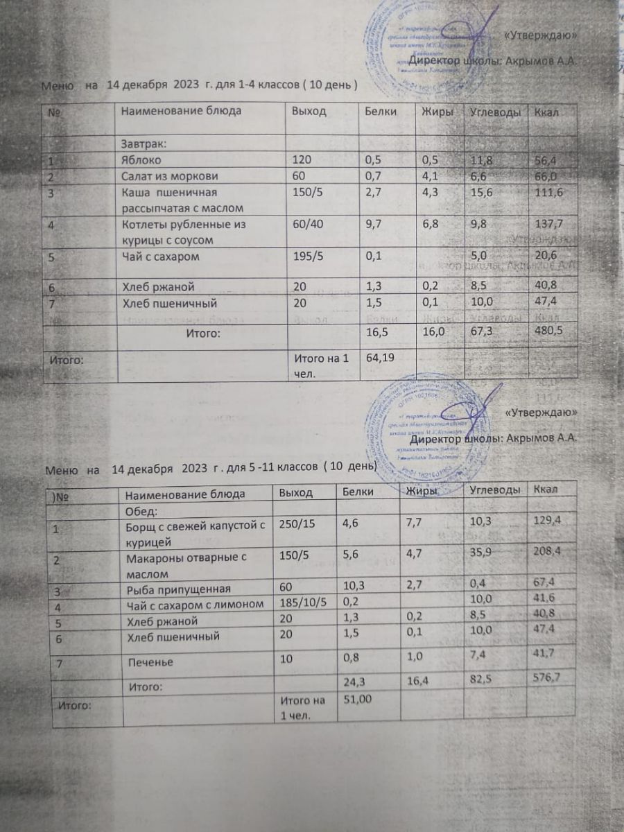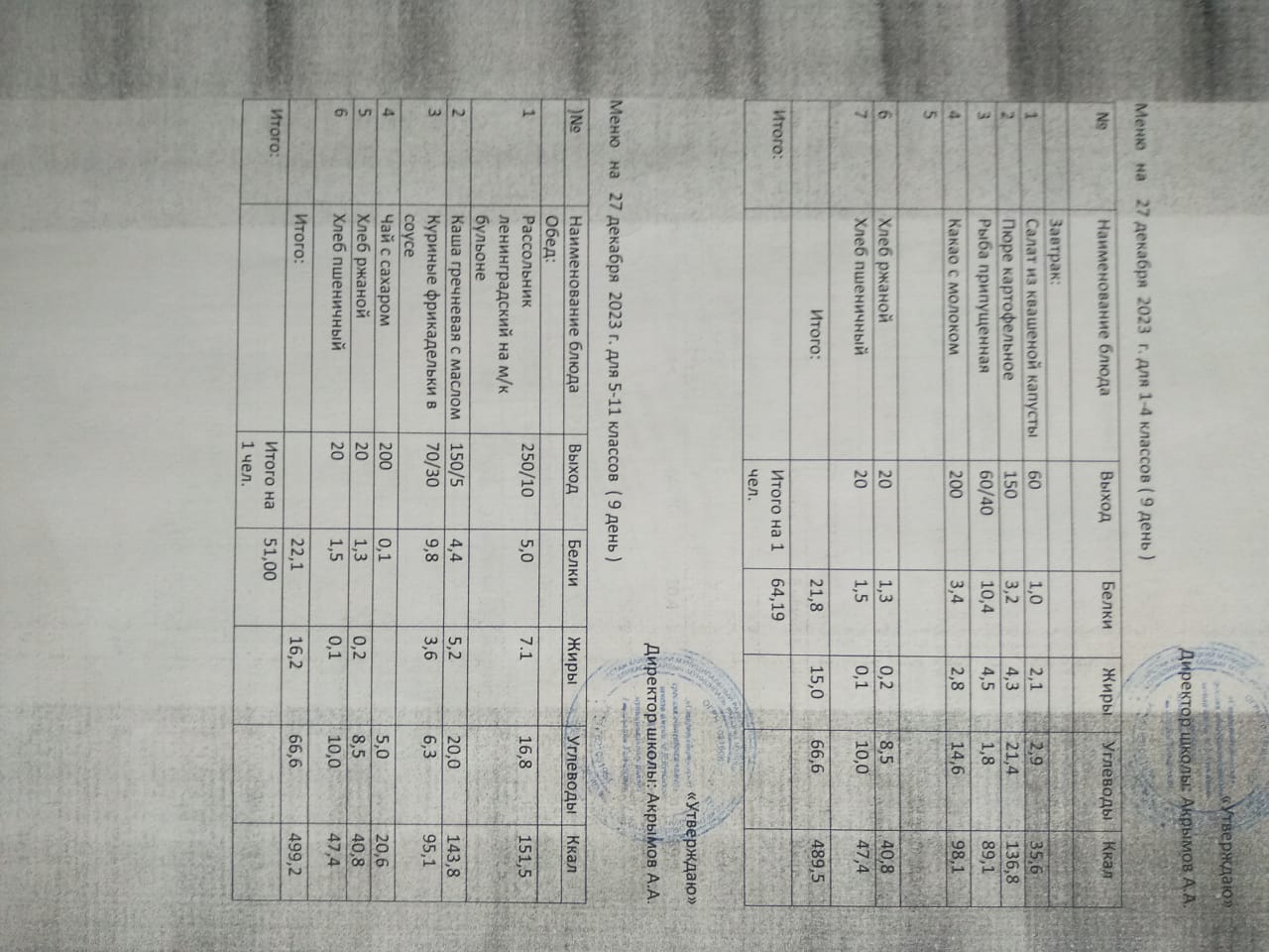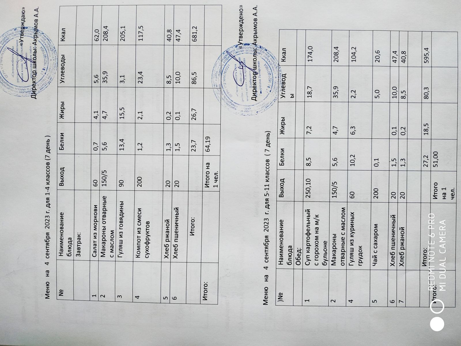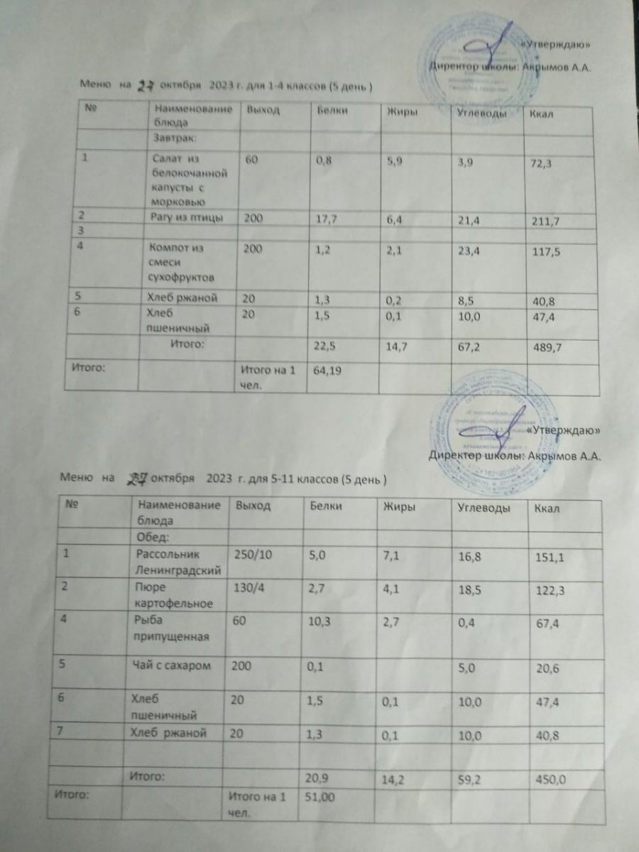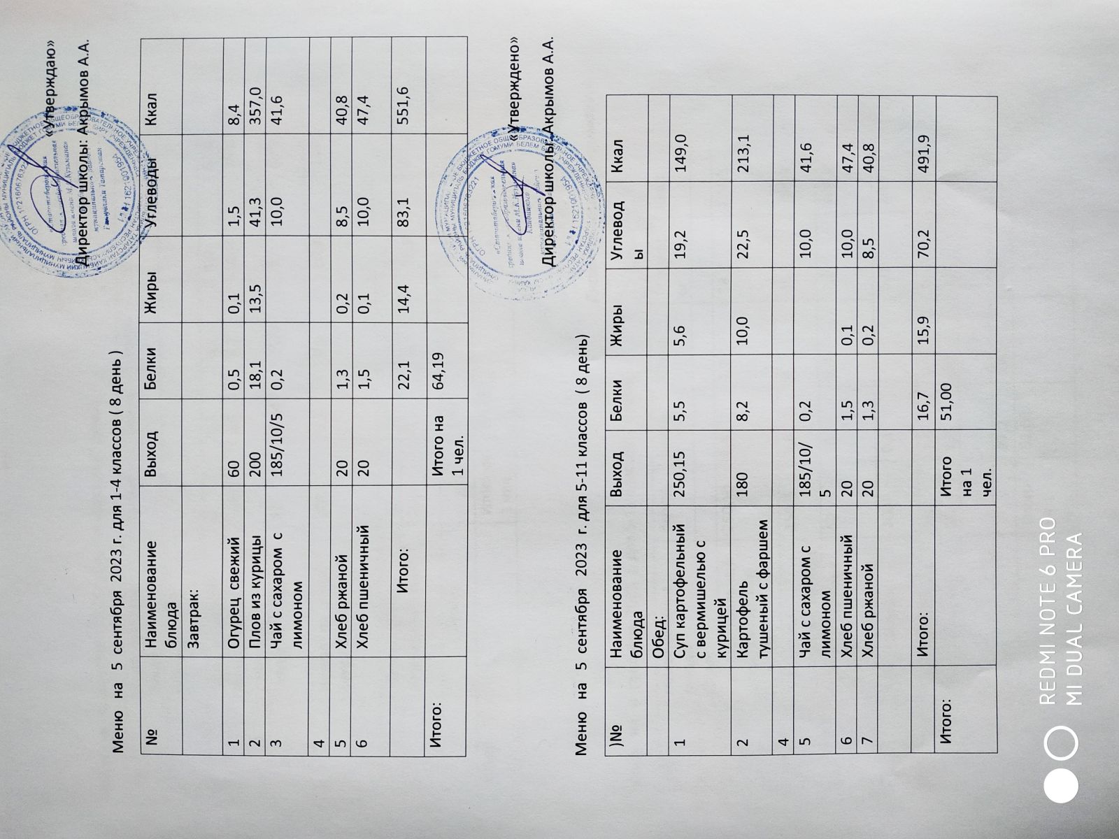 Ежедневное меню учащихся 1-4, 5-11 классов на 2023-2024 уч.год