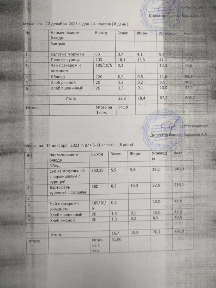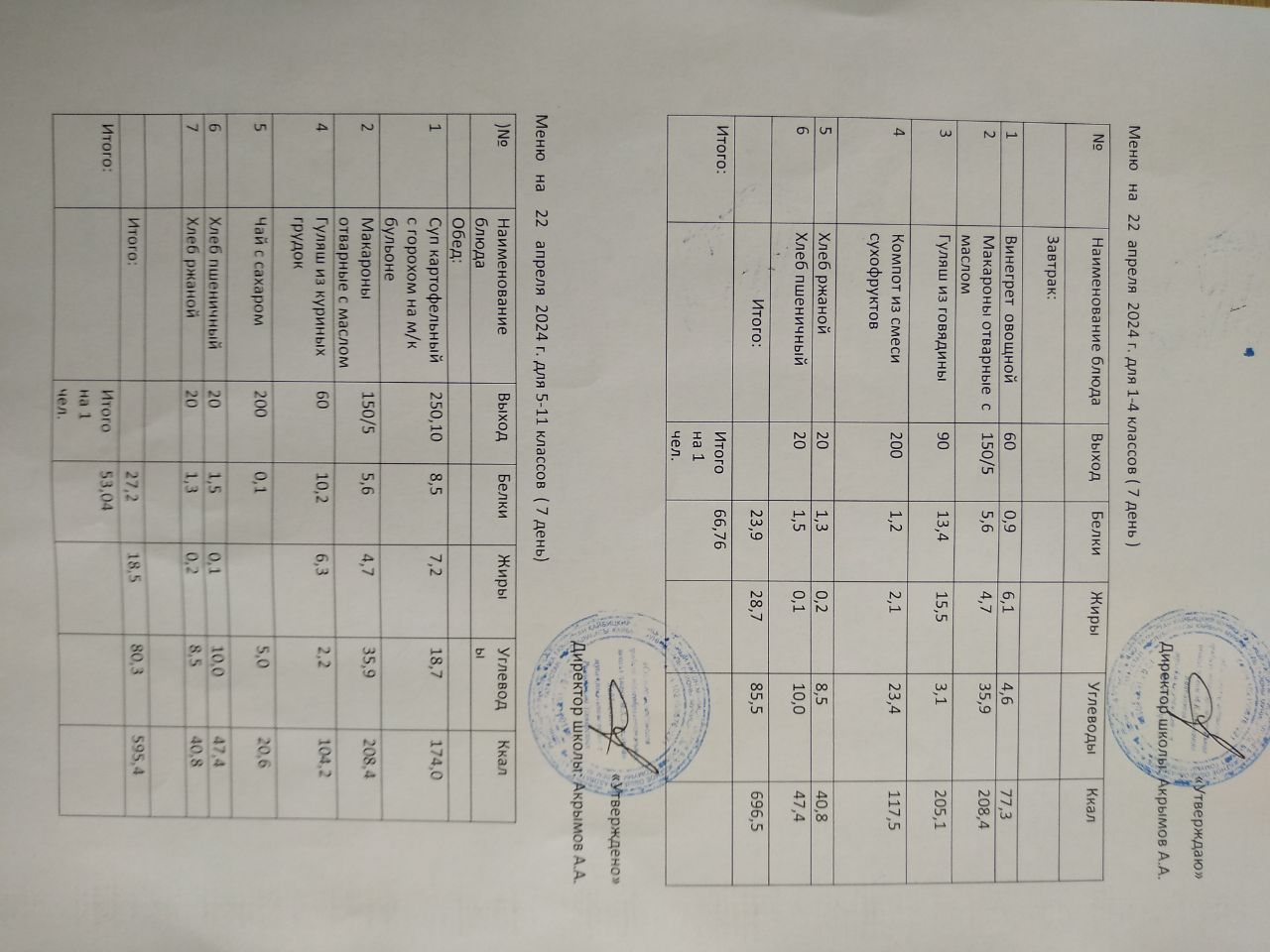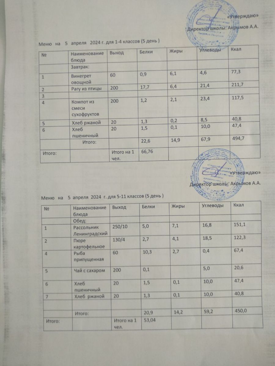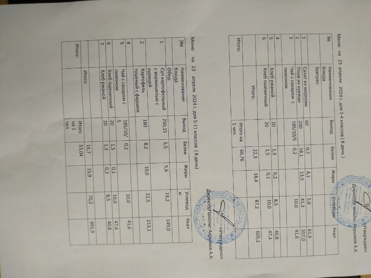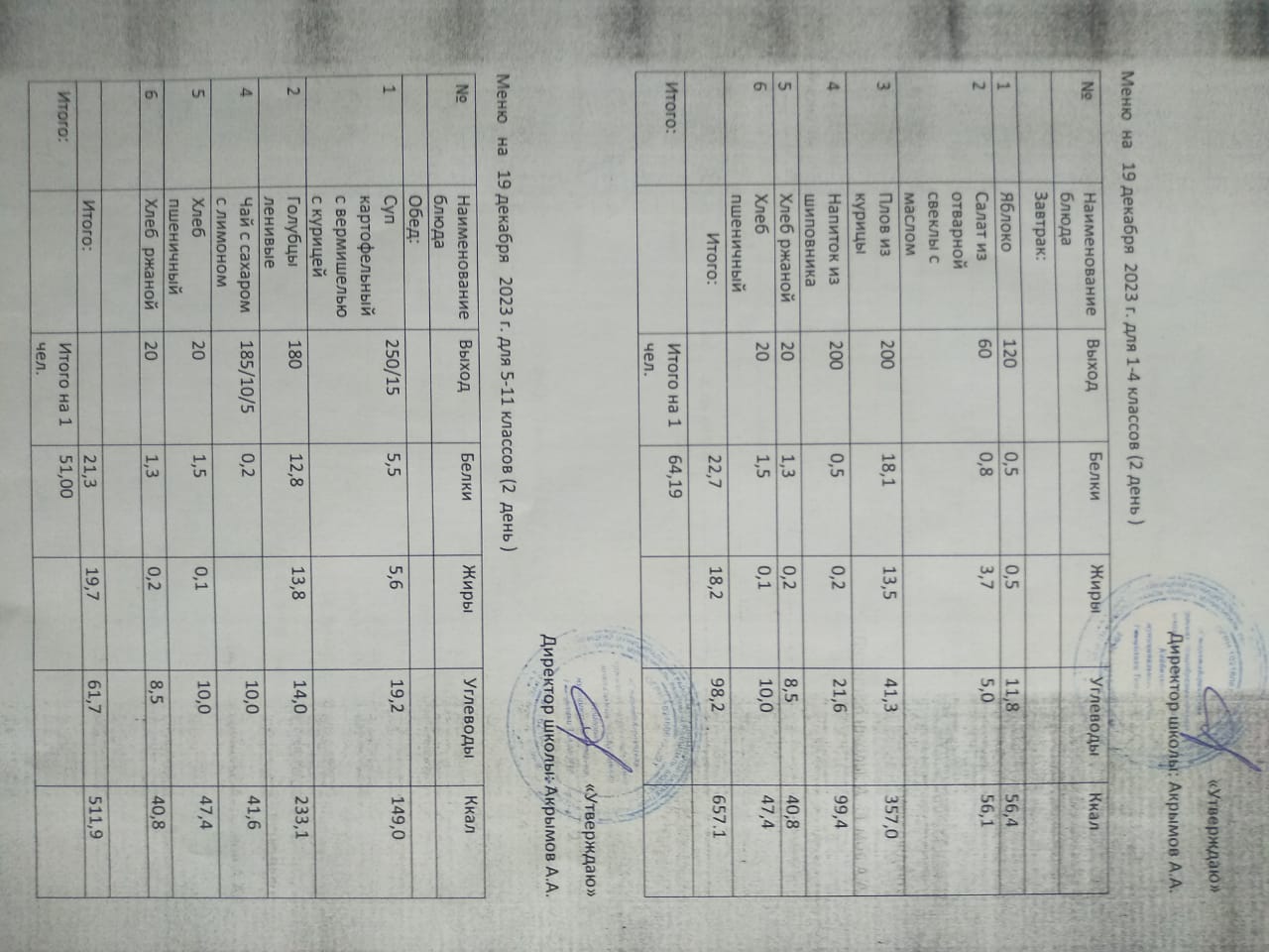 Ежедневное меню учащихся 1-4, 5-11 классов на 2023-2024 уч.год