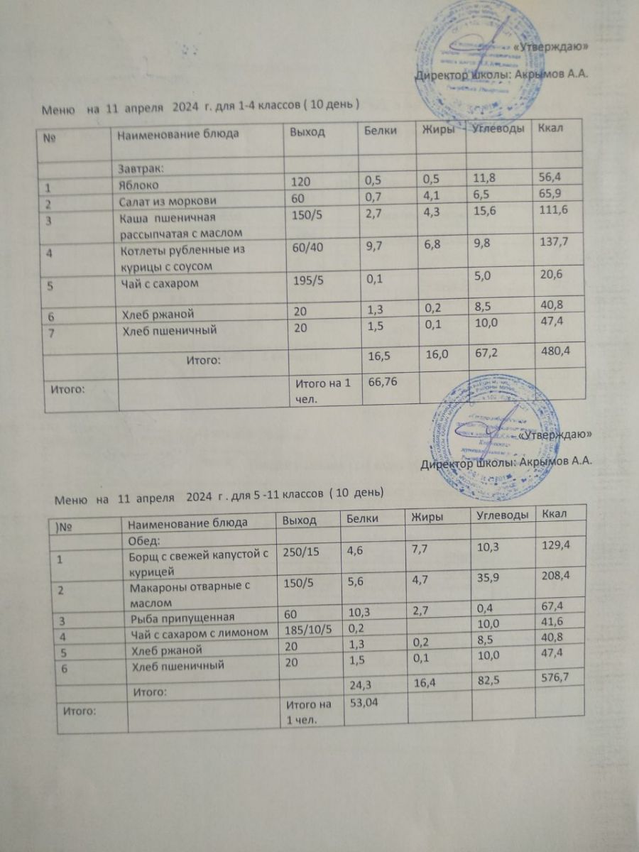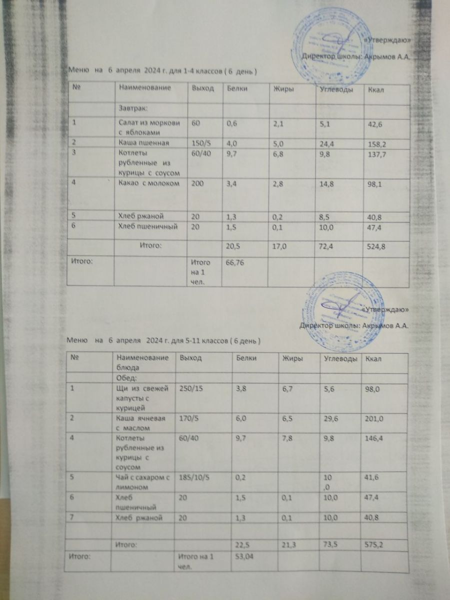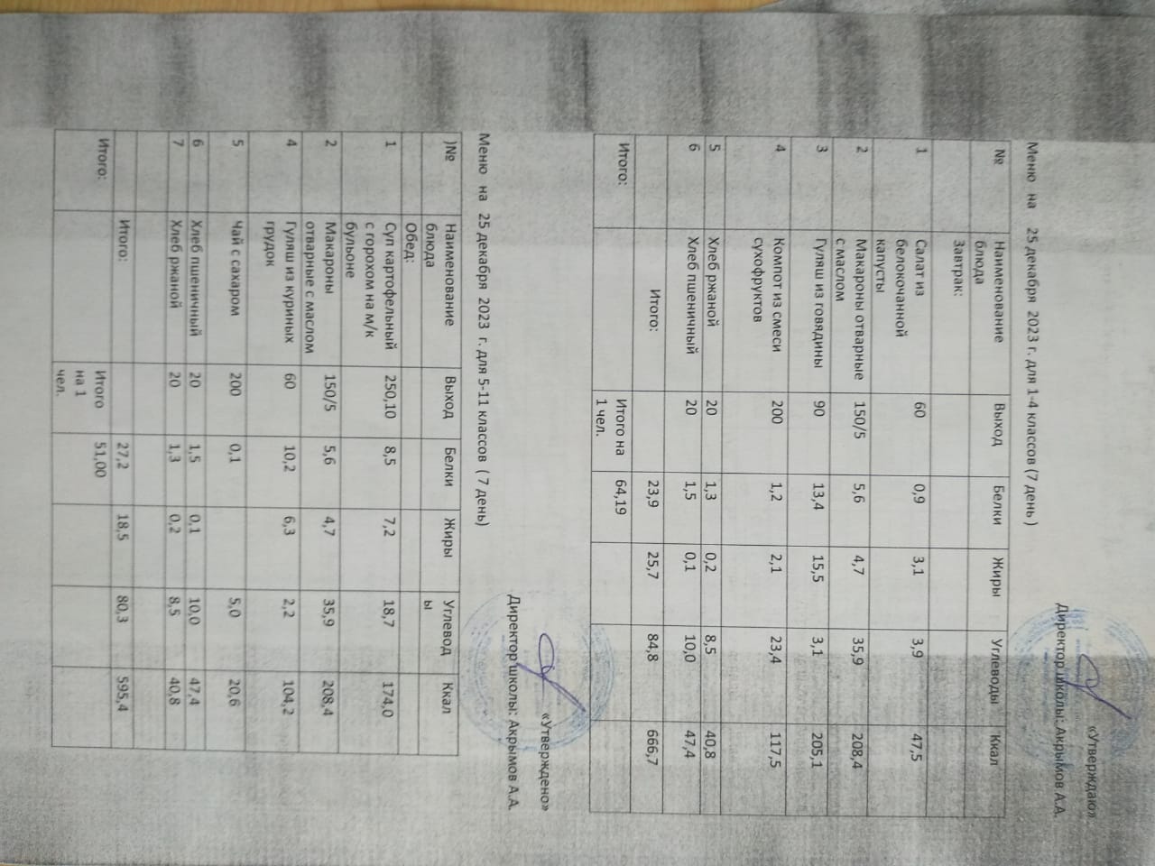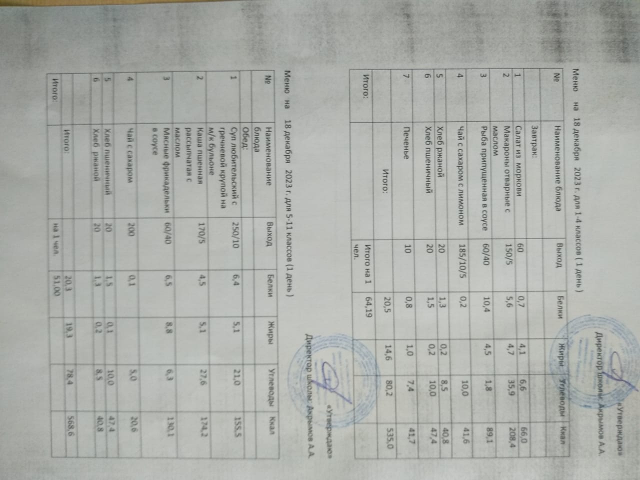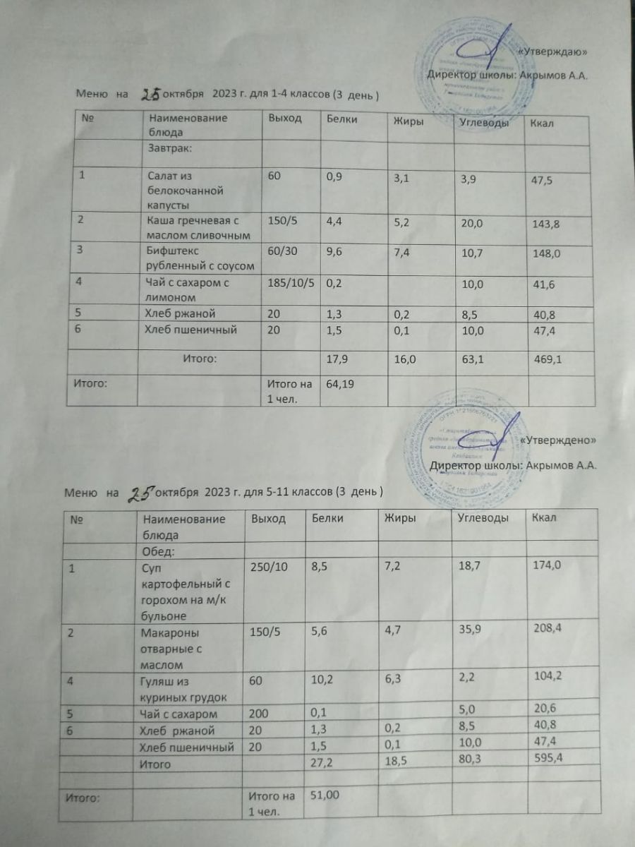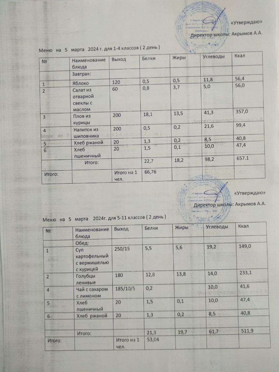 Ежедневное меню учащихся 1-4, 5-11 классов на 2023-2024 уч.год